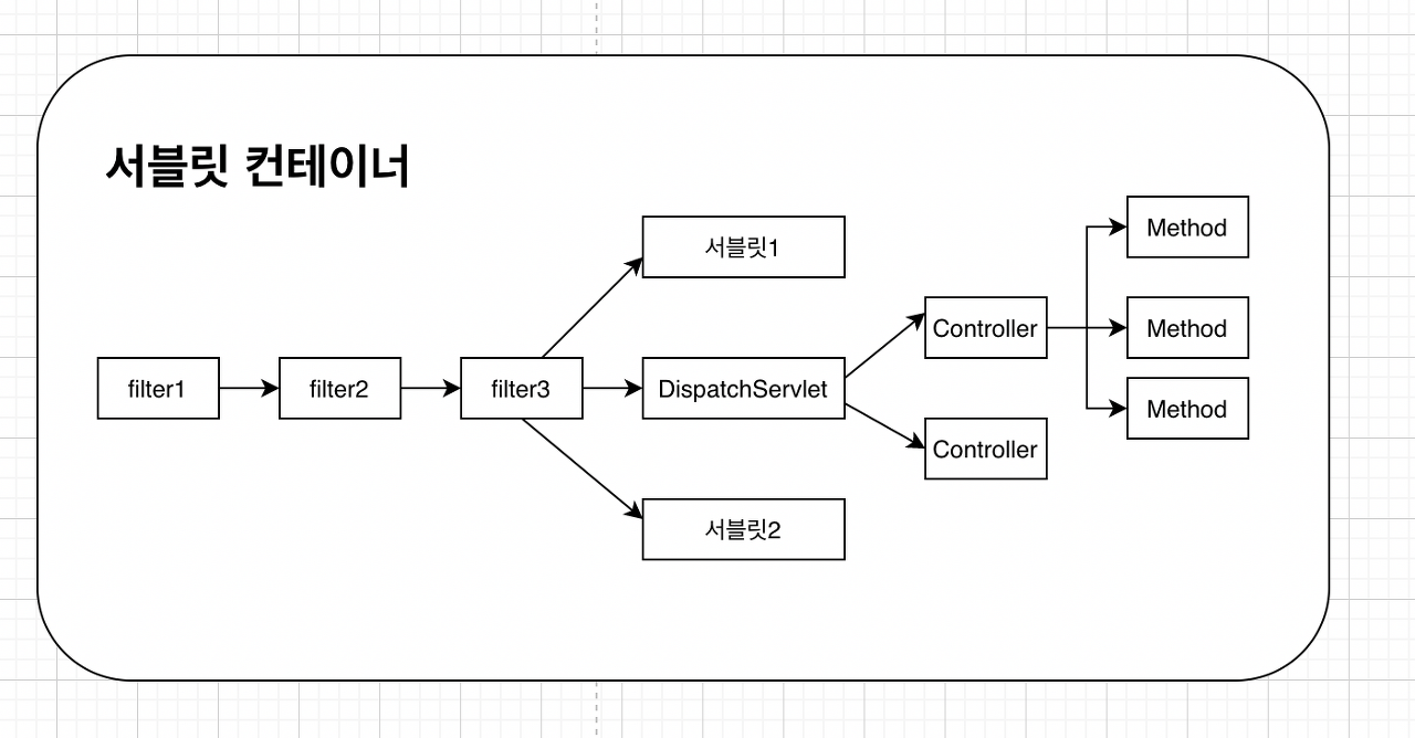 - 서블릿 컨테이너: 필터와 서블릿으로 구성