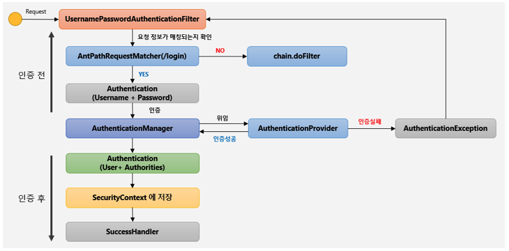 - UsernamePasswordAuthenticationFilter에서의 흐름