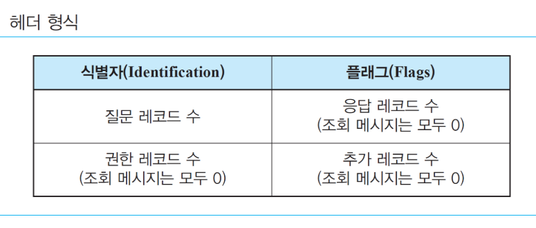 - 식별자: 조회와 응답이 한쌍임을 나타내는 16비트 길이의 식별자