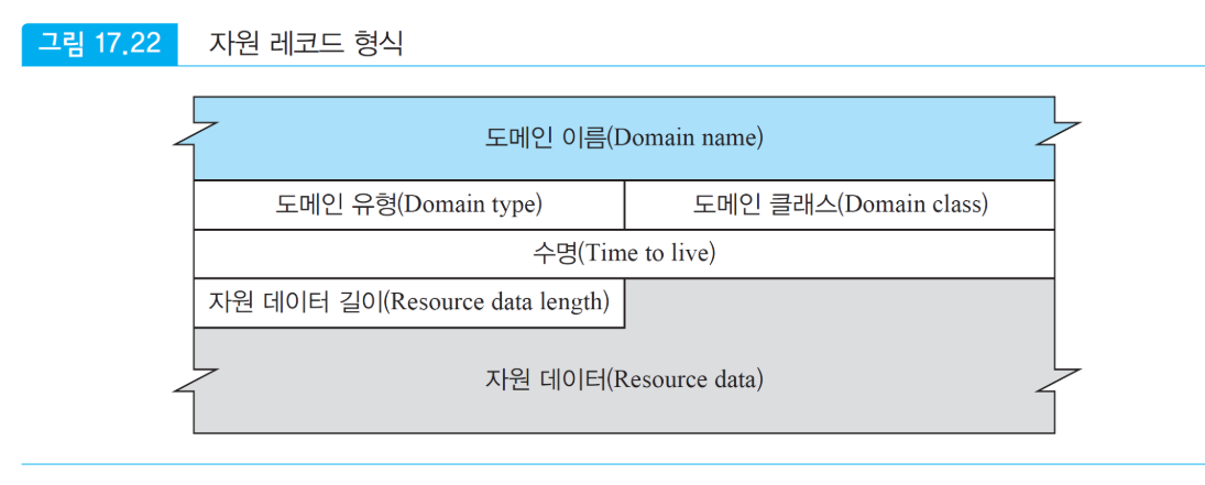 - 각 도메인 이름은 자원 레코드와 관계됨